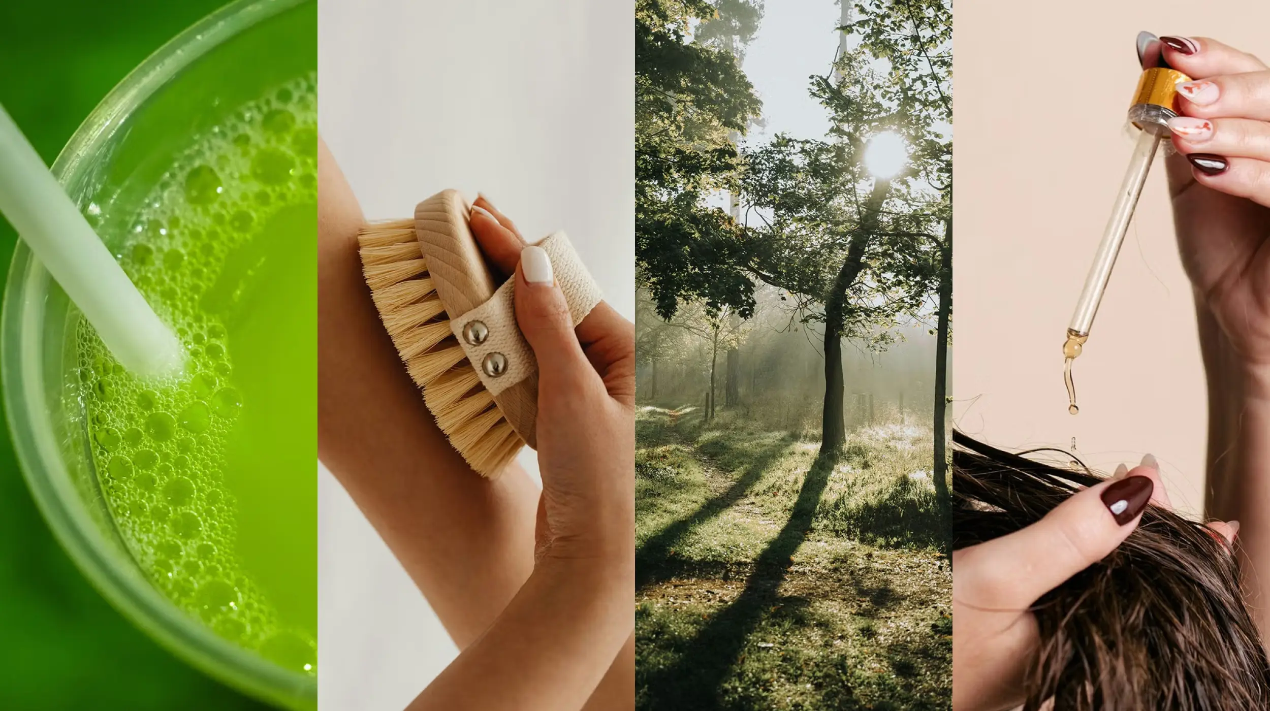 Tanto el cepillado en seco como la terapia con copas ayudan a eliminar el exceso de líquidos y me dan un impulso de energía. Por la noche, uso un aceite corporal (me encanta Bio-Oil porque no tiene fragancia y ayuda a atenuar marcas) para realizar un masaje linfático en el abdomen, especialmente eficaz para evitar la hinchazón después de una comida abundante.