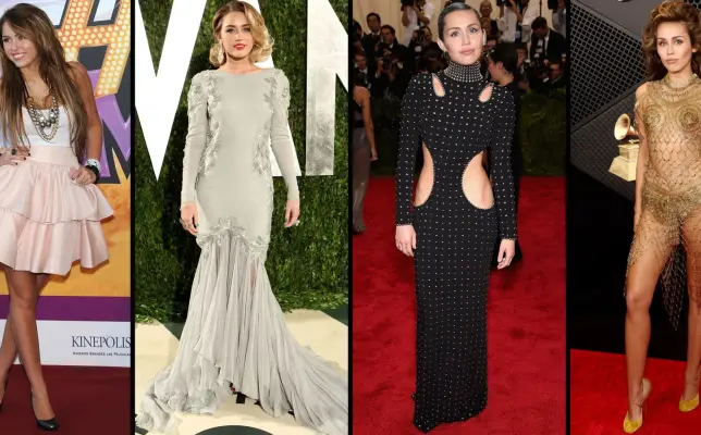 La transformación de Miley Cyrus, de actriz infantil a estrella del pop que domina los rankings, ha sido radical, por decir lo menos. Tras saltar a la fama como ídolo adolescente en la serie de Disney Channel Hannah Montana, con el tiempo comenzó a adoptar una actitud mucho más provocadora y transgresora frente a su celebridad. Hoy, Cyrus sigue siendo una de las estrellas más glamurosas del momento, siempre logrando sorprendernos en la alfombra roja.
