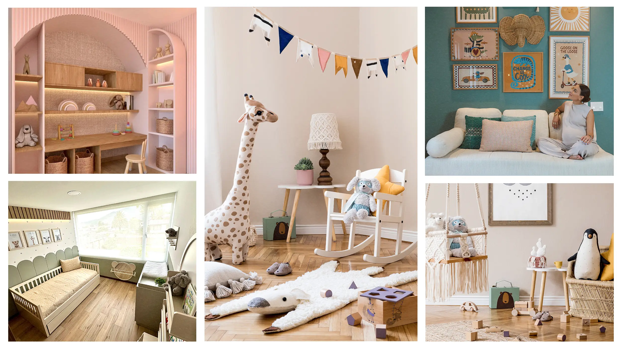 Me habló también de seguridad —anclar muebles a la pared, cuidar materiales, pensar en barreras físicas si se pasa de cuna a cama— y de iluminación cálida, con circuitos separados y pequeñas luces nocturnas. En cuanto a tendencias, mencionó paletas complementarias como: rosa con verde o celeste con amarillo. Mezclas sutiles que aportan identidad sin saturar los espacios.