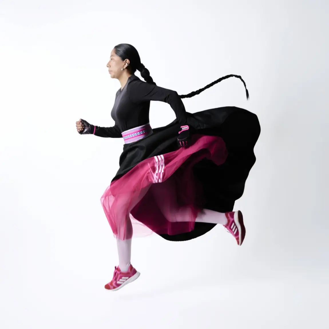 “Para mí correr con anaco significa resistencia frente a la discriminación. Nos han metido en la cabeza durante muchos años que, si queremos superarnos, tenemos que sacarnos el anaco o el poncho. Yo me he criado viendo cómo las mujeres que me rodean siempre cosechan, siembran y suben montañas con esta vestimenta y para ellas nunca ha sido un limitante. Ellas me han dado la fuerza para decir que, si para ellas no lo fue, para nosotros los jóvenes tampoco debería serlo”. (I)