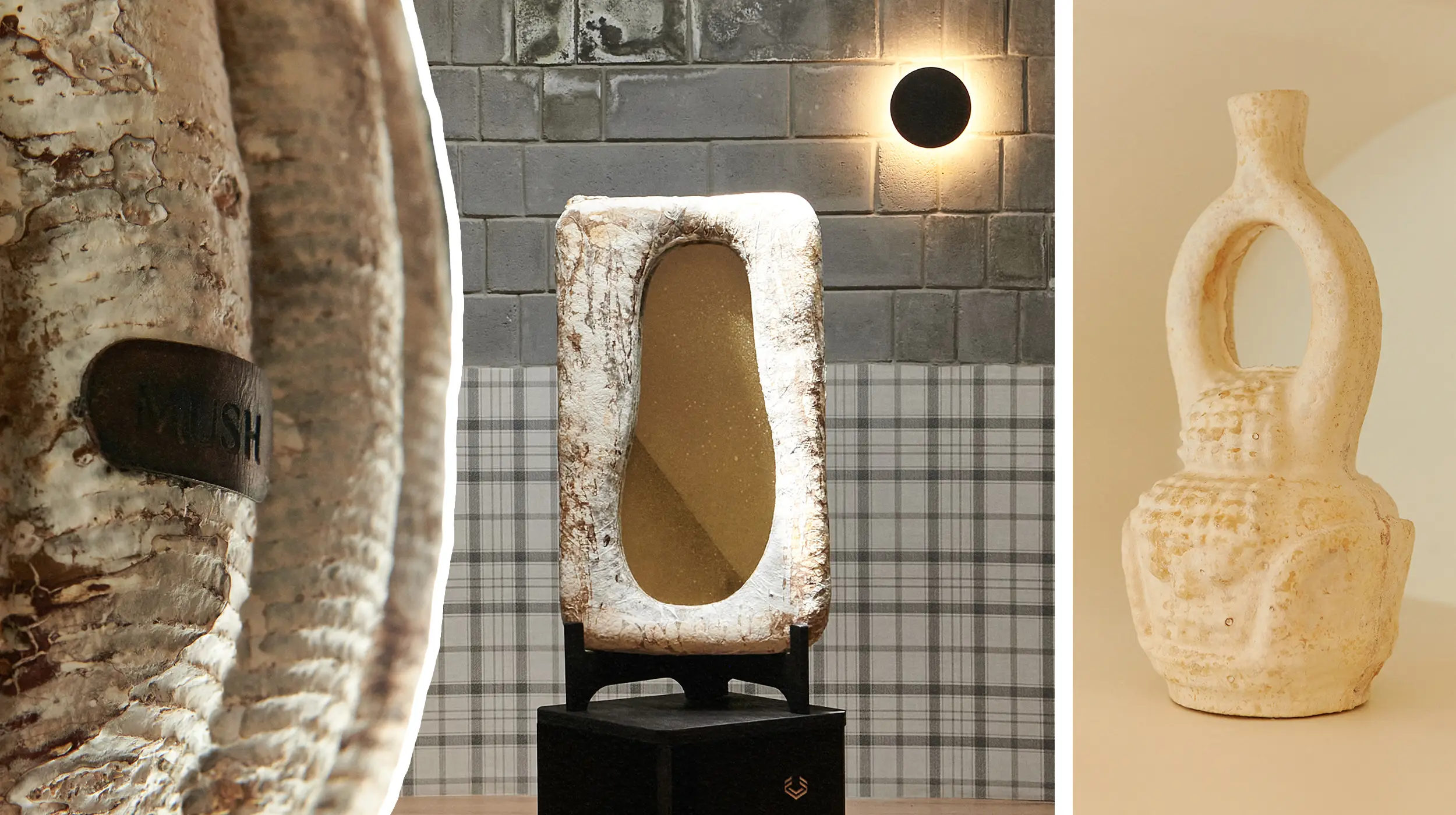 Desde entonces, Fátima dejó el taller de metal y madera para instalarse en laboratorios de cultivo en Tumbaco y en el norte de Quito. Durante un año aprendió a trabajar en condiciones rigurosas y conectó su mirada creativa con la disciplina del método científico, basada en la observación constante. Esa combinación dio lugar a Mush: un proyecto que utiliza residuos como el aserrín y los mezcla con el hongo reishi, conocido por alimentarse de madera en descomposición. La premezcla se coloca en moldes y, bajo condiciones controladas de temperatura y humedad, el micelio crece como una red que une las partículas hasta formar una estructura sólida. Después de cinco a nueve semanas —sin importar si la pieza pesa gramos o varios kilos—, el proceso se detiene mediante un secado controlado.