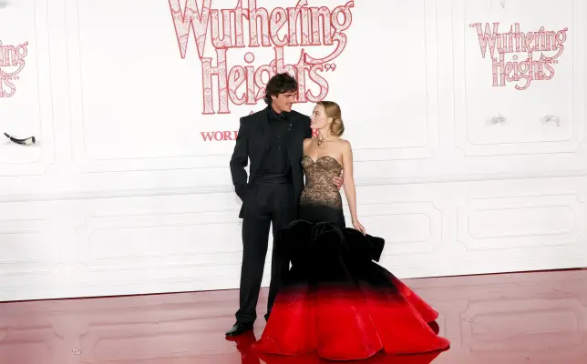En el estreno mundial en Los Ángeles, la actriz australiana fue estilizada por Andrew Mukamal y lució un vestido de alta costura de Schiaparelli hecho a la medida, inspirado en la colección de alta costura primavera 2026, presentada recientemente en París. En pasarela, el diseño se presentó en azul y negro, con un marcado efecto trompe-l’œil, una técnica que juega con la ilusión de profundidad. Robbie, en cambio, optó por una lectura más cercana a los códigos victorianos: un corpiño sin tirantes con encaje y una falda de pétalos en degradé de ónix y rojo escarlata, tonos recuperados de otros momentos del desfile.