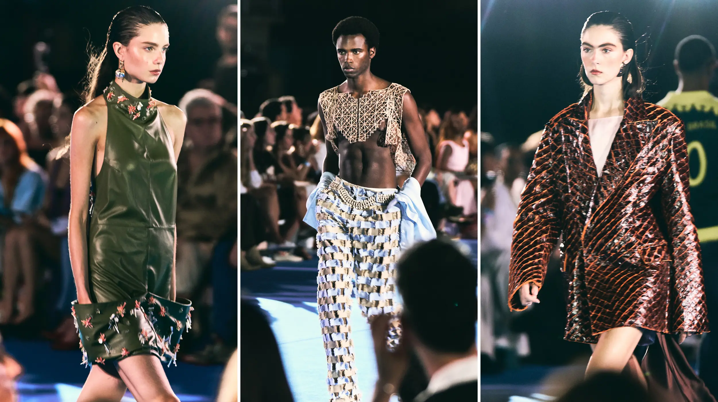 Airon Martin presentó en la pasarela de Rio Fashion Week su nueva propuesta, Escapismo tropical. Esta es una colección que evoca añoranza, memoria y evolución. La narrativa recorre el muelle de Ipanema, las dunas de Barra da Tijuca y el Río de Janeiro de antaño. Como inspiración tiene a las musas, bailes, cánticos, tambores y resistencias. Se trata de una creación que transmite pertenencia, que entiende que la historia es importante para formar un legado, transformando la cosmovisión en prenda y las épocas en detalle.