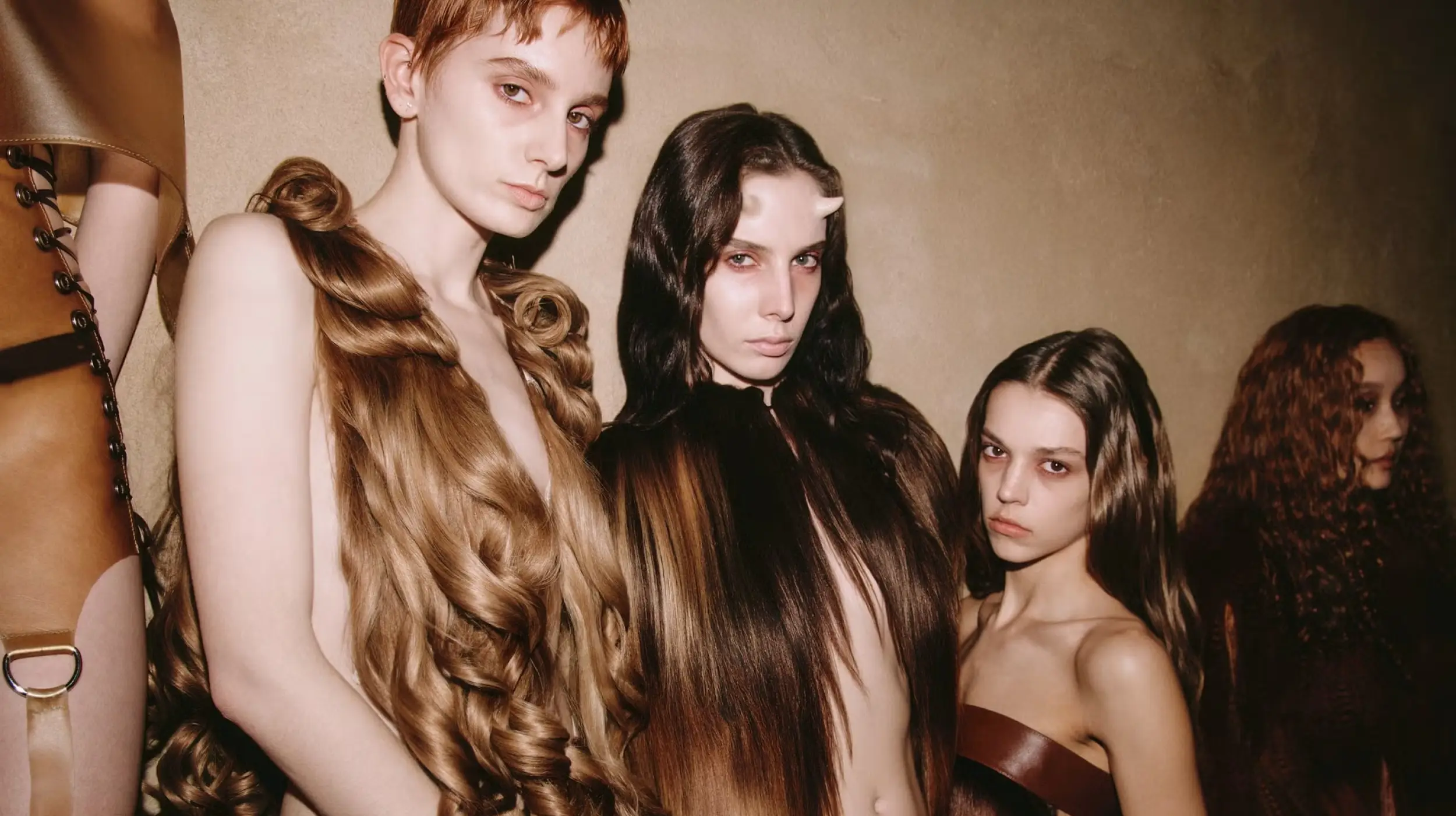Una progresión natural, aunque audaz, Showpony le permitió abordar su medio desde perspectivas frescas —y a veces inquietantes—, entendiendo el material como algo “más allá de lo que puede ir sobre tu cabeza” y también como algo que “puede vestir el cuerpo”. Jugando con formas, tamaños y colores, creó una colección otoño 2026 de piezas vanguardistas y ponibles (¿alguien quiere ropa interior capilar?) elaboradas con cabello deadstock que ha acumulado a lo largo de los años.