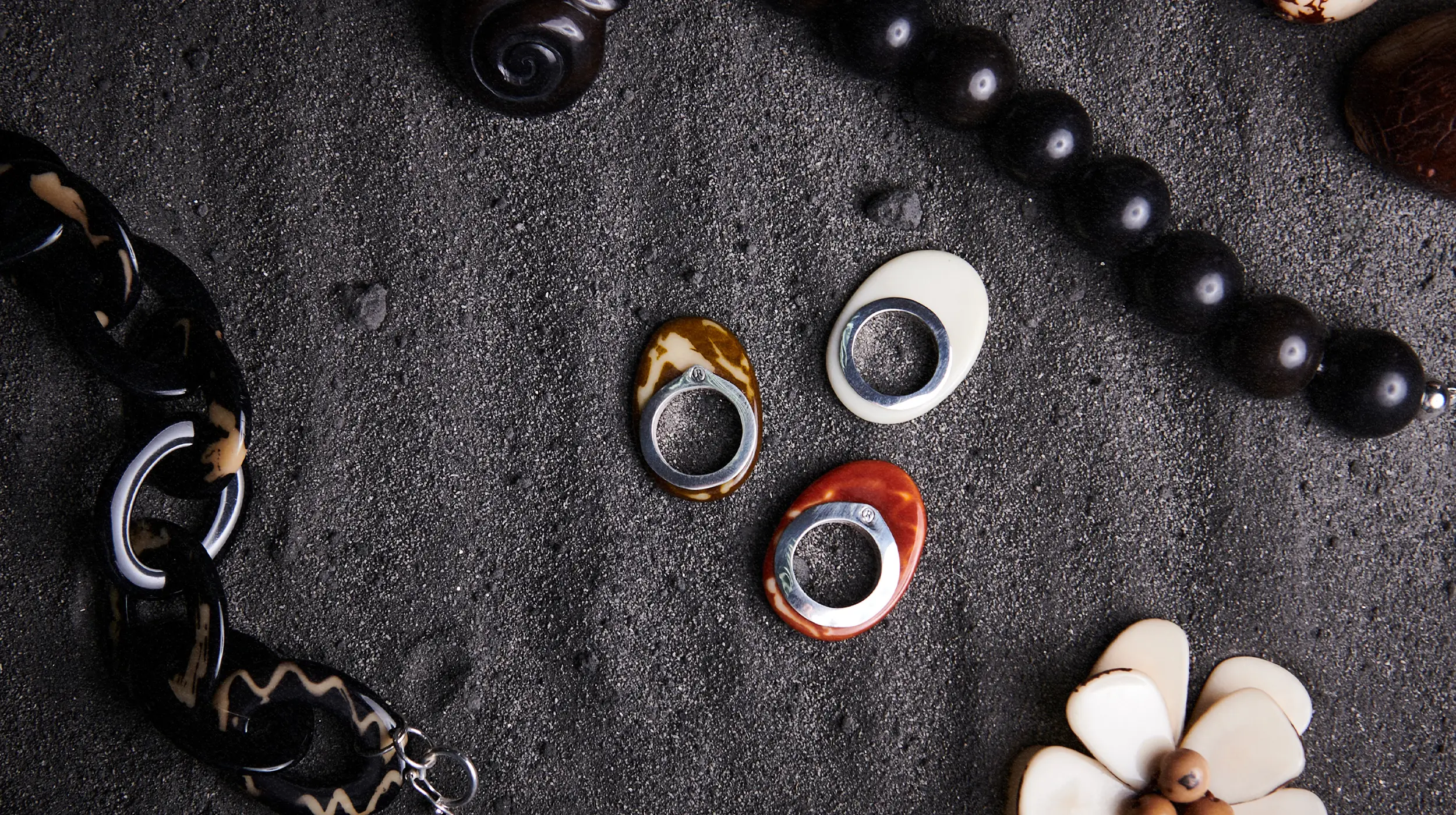 En el corazón tropical de Ecuador, donde la selva respira lento, nace un material capaz de transformarse en joya. La tagua, conocida como palmera de marfil o científicamente como Phytelephas aequatorialis, prospera en las zonas húmedas del país, especialmente en las orillas de los ríos. Sus frutos, agrupados en grandes racimos llamados mocochas, resguardan decenas de semillas. Son estas esferas —firmes, orgánicas y naturalmente luminosas— las que dan vida a collares, aretes, anillos y una infinidad de piezas artesanales.