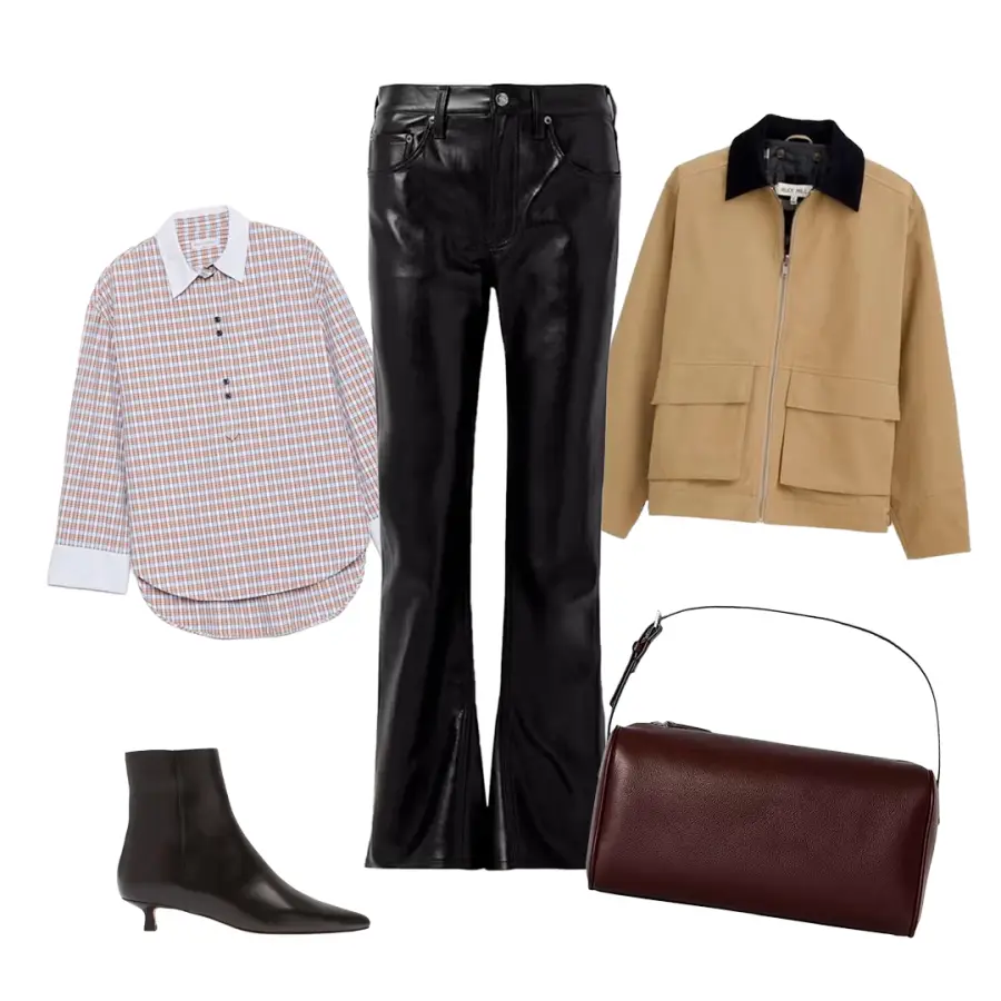 Chaquetas tipo barn, camisas de popelina y botas: estas piezas esenciales dominaron los looks de street style durante el Mes de la Moda. Completa el conjunto con unos pantalones de cuero de corte bootcut para lograr una fórmula tan moderna como sofisticada.