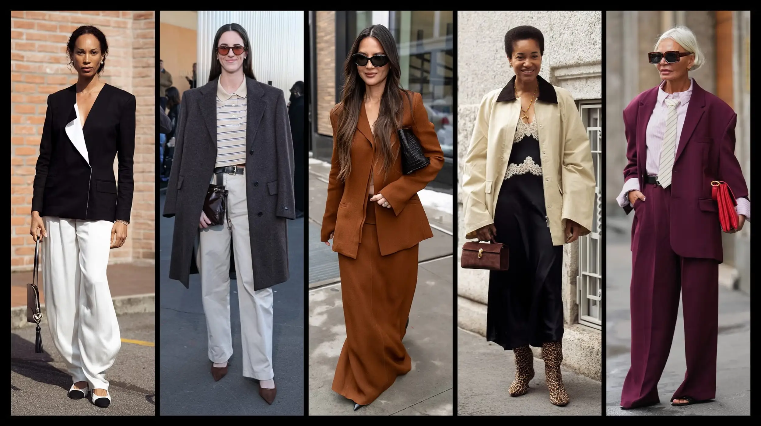 El calzado también evoluciona. Las botas altas ceden el paso a mocasines preppy, mules, slingbacks y botines de piel más descubiertos que equilibran comodidad y formalidad. Accesorios como un tote estructurado, joyería delicada o un pañuelo aportan personalidad a los clásicos de oficina.