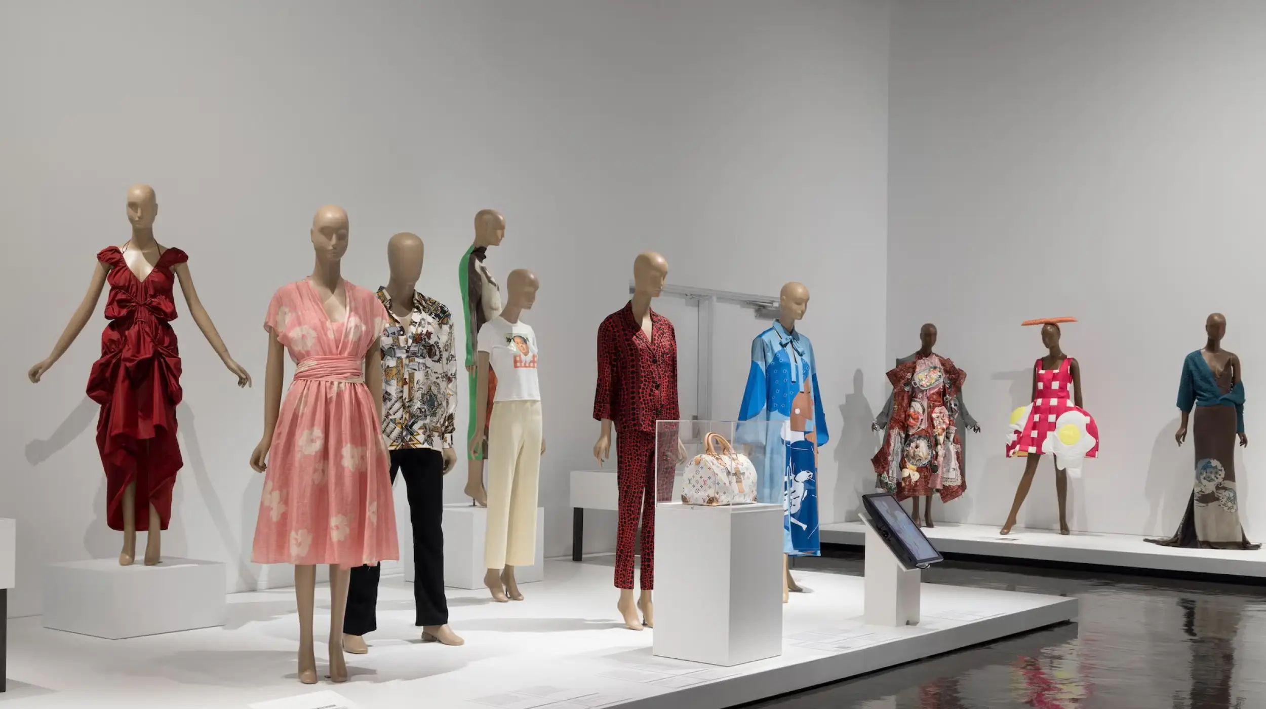 “Se ha escrito muchísimo sobre esta intersección”, afirma Elizabeth Way, curadora de vestuario y accesorios en MFIT y creadora de la muestra. “Esta exposición trata sobre cómo la colección del museo responde a ese tema”. En lugar de apoyarse en ejemplos evidentes —como la colaboración de Louis Vuitton con Takashi Murakami o los estampados de Marilyn Monroe de Versace tras Warhol (artista plástico)—, Way profundiza en las razones por las que este fenómeno de larga data persiste.