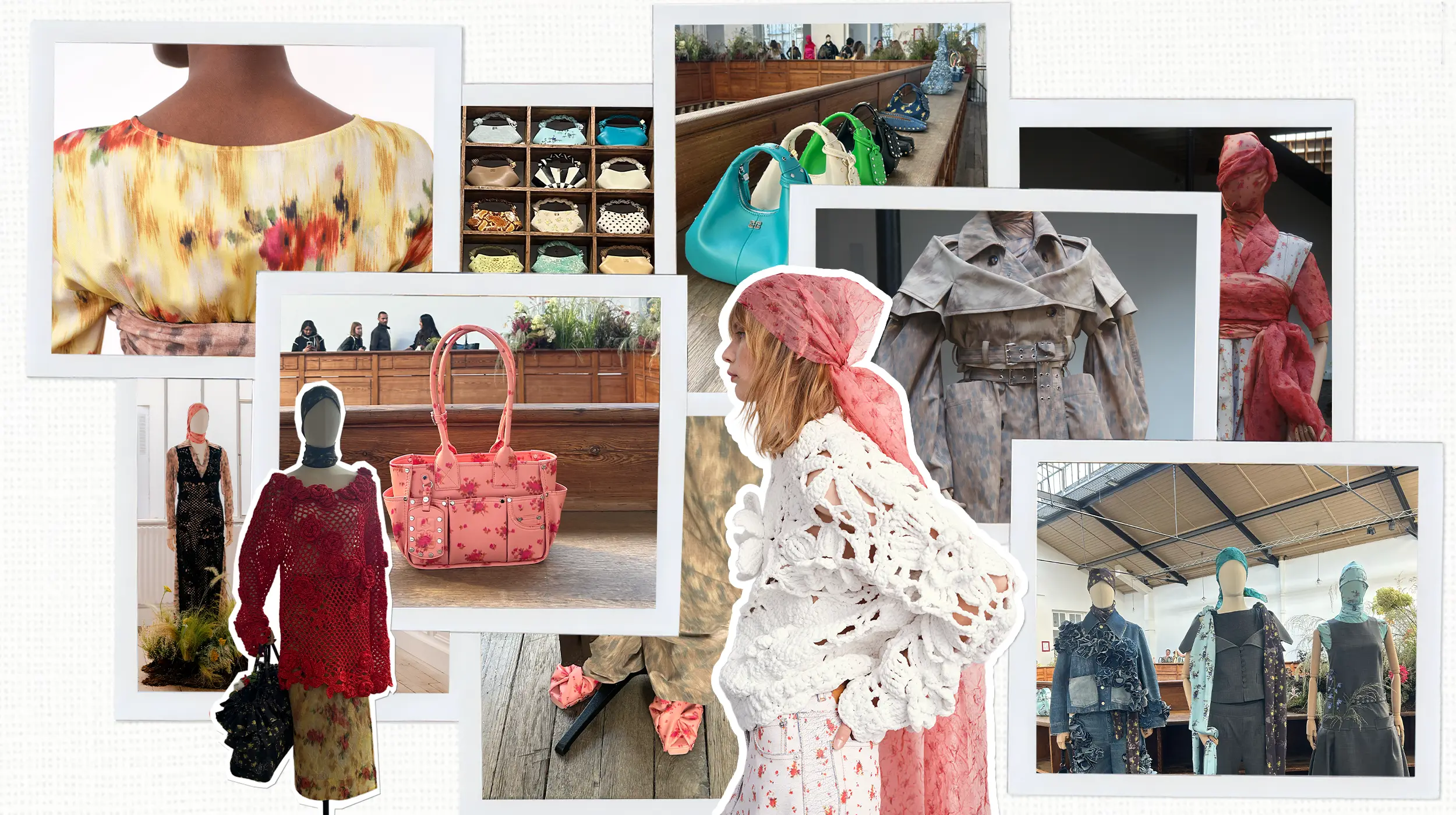 En el segundo piso, los nuevos accesorios ocupaban el centro de la escena: la Posy Bag, inspirada en los bolsos de jardinero con bolsillos oversized y funcionalidad práctica; y el calzado que reimaginaba los veranos daneses: desde zuecos de madera renovados con prints y tachuelas, hasta flats envueltos en tela, ligeros como una brisa estival.