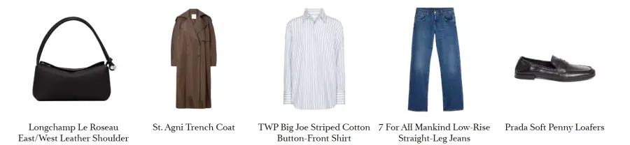 Equilibra la actitud relajada del tiro bajo con piezas de inspiración preppy: una camisa de rayas abotonada y mocasines clásicos son el punto de partida ideal. Remata con una gabardina fluida para unificar el look, manteniendo la silueta amplia y desenfadada.
