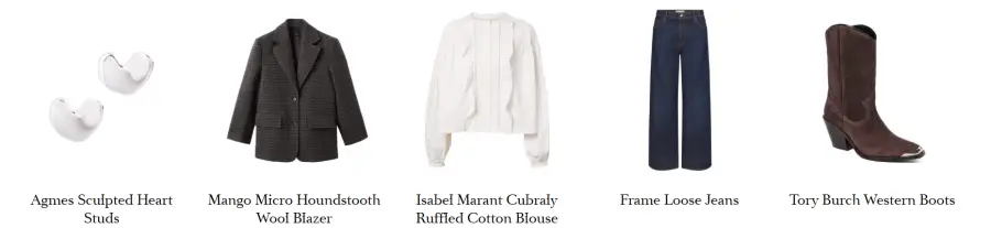 Puede que el furor cowboy algún día se desvanezca en el horizonte, pero ese día no es hoy. Abraza esta estética persistente con una blusa con volantes y jeans de tiro bajo y pierna ancha. Incorpora textura con botas western de gamuza —como las de Tory Burch— y contrasta con un blazer de estampado houndstooth para un giro sofisticado. (I)