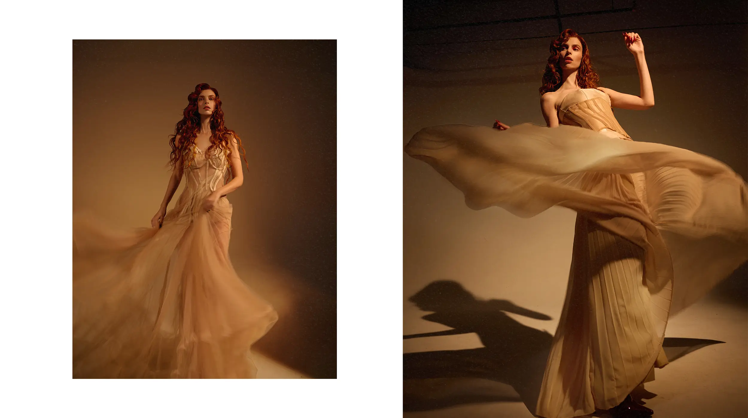 Fotografía: Holly Parker. Vestidos nude translúcidos superpuestos: Michelle Hebert.