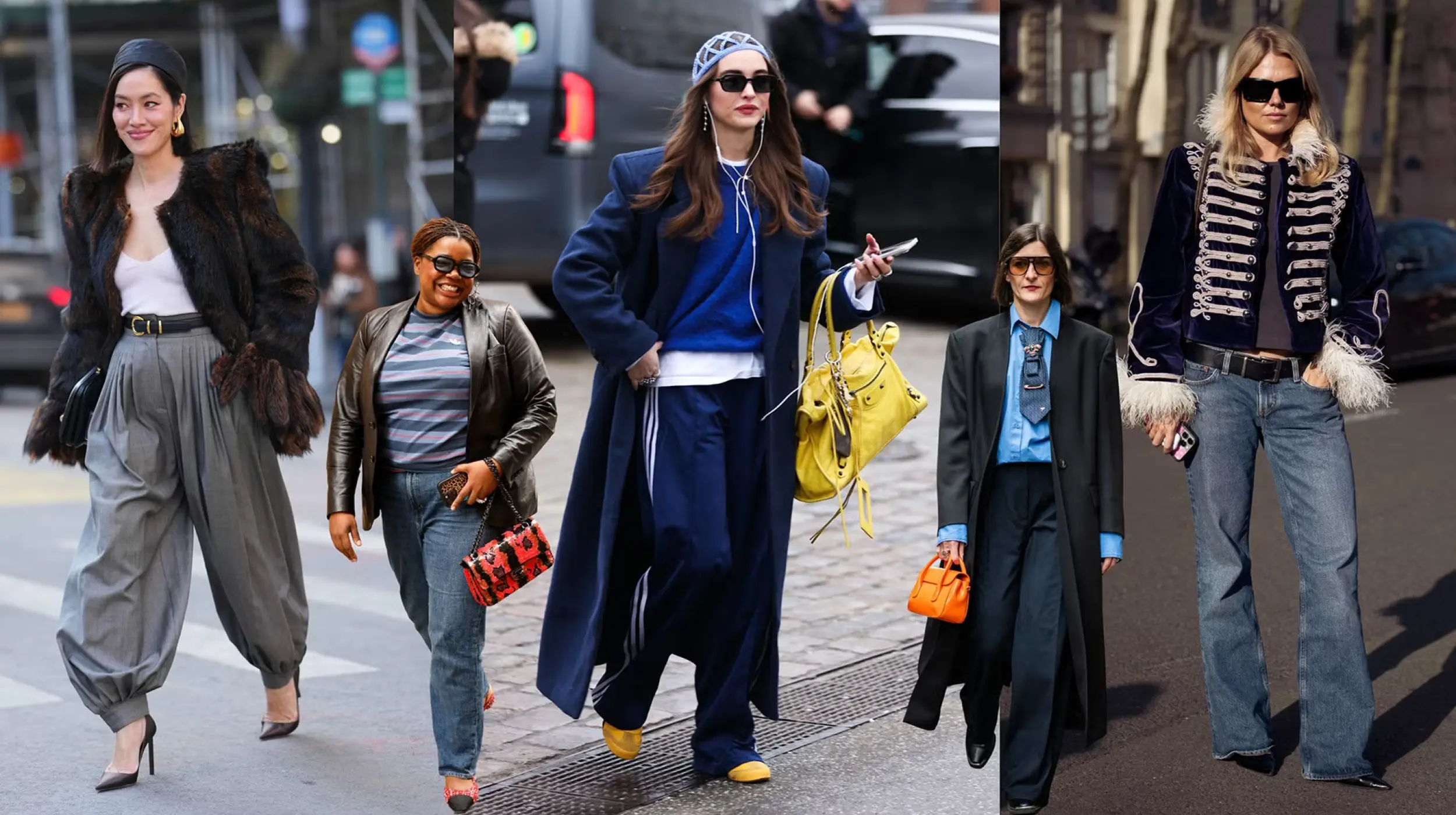Quienes se oponen al regreso de los skinny jeans estarán encantados: el street style apostó esta temporada por siluetas mucho más voluminosas. Los pantalones globo (también llamados balloon) estuvieron en todas partes, equilibrando dramatismo y estructura, ya sea llevados dentro de botas hasta la rodilla o elevados con elegantes tacones slingback.
