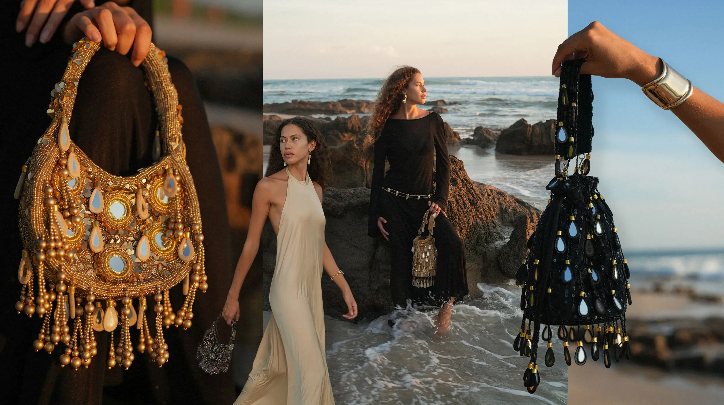 Las siluetas varían, pero todas comparten una misma esencia. Está la Rosé Formentera Bag, con una figura curva como un collar antiguo llevado al formato bolso. En tonos nude y rosados, se cubre de perlas que caen como una cascada. Su precio es de US$ 211. La Red Martinas Bag, por su parte, tiene un concepto monocromático. Totalmente cubierta en rojo, desde la base hasta los colgantes. Además, juega con capas para crear movimiento. Tiene un costo de US$ 175. Otro diseño es el tipo bucket (negro, dorado y plateado). Es una versión más nocturna, con más espacio cubierto de lentejuelas y un destello que acompaña los outfits.